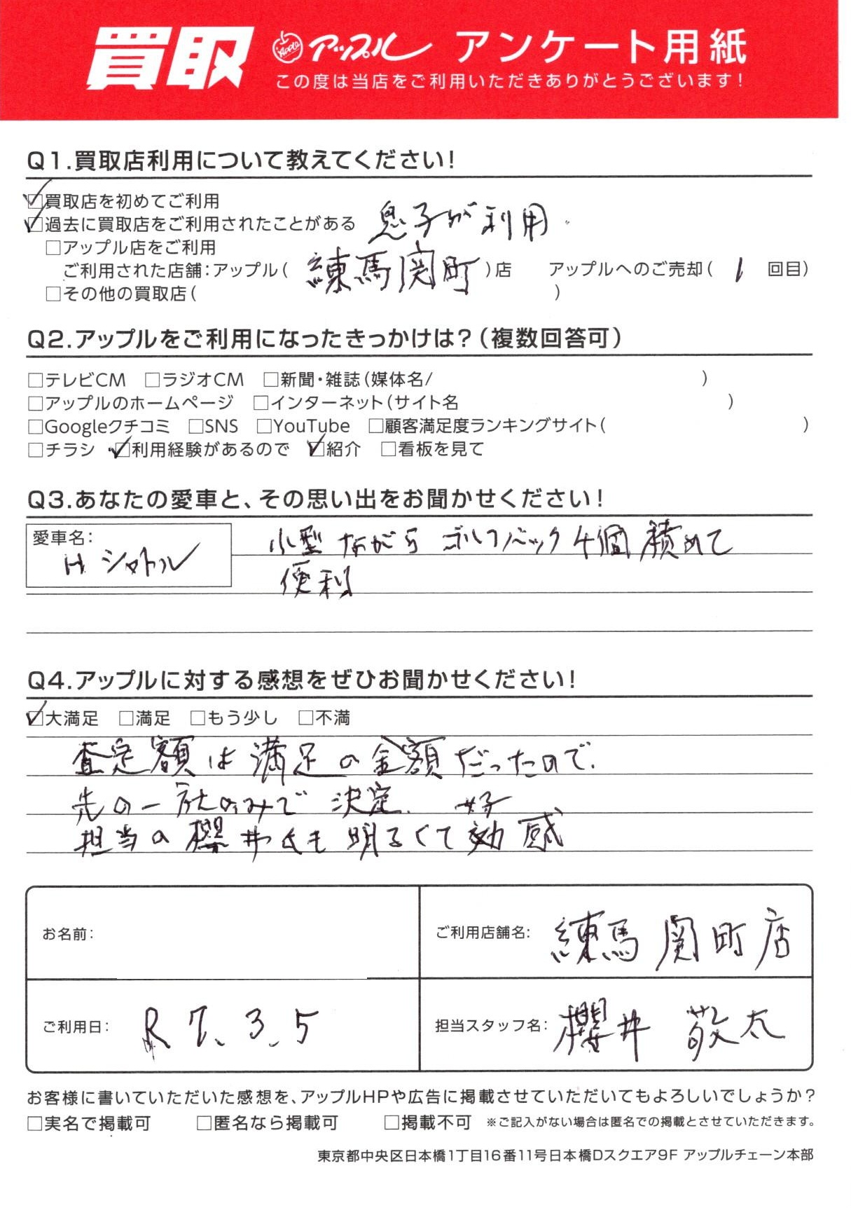 お車のご相談・ 査定だけでもOK! カンタン 入力 30秒 アップルがブランド買取始めました! お電話でも受付中! 受付時間10:00 ~ 19:00 03-5903-8567 お車のご相談・ 査定だけでもOK! カンタン 入力 30秒 アップルがブランド買取始めました! お電話でも受付中! 受付時間10:00 ~ 19:00 03-5903-8567 アップルがブランド買取始めました! お電話でも受付中! 受付時間10:00 ~ 19:00 03-5903-8567 店舗情報 在庫車 スタッフ紹介 ブログ お客様の声 キャンペーン お得 無料査定 click お客様の声 ご記入日: 2025/03/05 練馬区 I・K様 車名:ホンダ シャトル お車:Hシャトル Q.愛車との思い出は?小型ながらゴルフバッグ4個積めて便利 Q.アップルの感想は?A.大満足:査定額は満足の金額だったので、先の一社のみで決定。担当の櫻井氏も明るく好感 前へ 次へ お客様の声一覧を見る