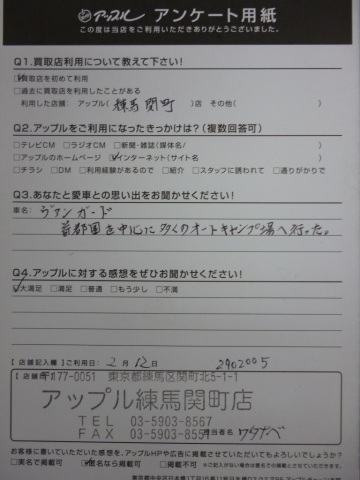 お車のご相談・ 査定だけでもOK! カンタン 入力 30秒 アップルがブランド買取始めました! お電話でも受付中! 受付時間10:00 ~ 19:00 03-5903-8567 お車のご相談・ 査定だけでもOK! カンタン 入力 30秒 アップルがブランド買取始めました! お電話でも受付中! 受付時間10:00 ~ 19:00 03-5903-8567 アップルがブランド買取始めました! お電話でも受付中! 受付時間10:00 ~ 19:00 03-5903-8567 店舗情報 在庫車 スタッフ紹介 ブログ お客様の声 キャンペーン お得 無料査定 click お客様の声 ご記入日: 2017/02/12 K・K様 お車:ヴァンガードQ.愛車との思い出は? A.首都圏を中心に多くのオートキャンプへ行った。 Q.アップルの感想は? A.大満足。 前へ 次へ お客様の声一覧を見る