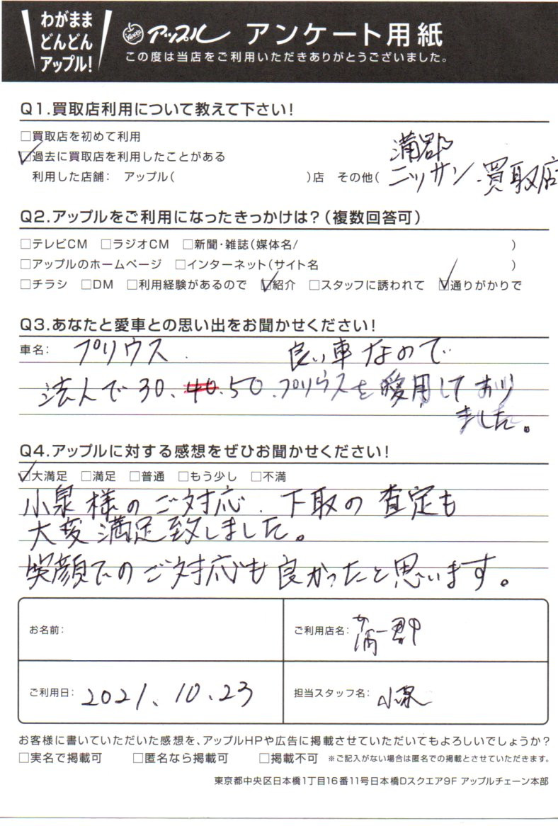 お車のご相談・ 査定だけでもOK! カンタン 入力 30秒 アップルがブランド買取始めました! お電話でも受付中! 受付時間10:00 ~ 19:00(新規ご査定の受付は18:30までとなります。) 0533-66-6666 お車のご相談・ 査定だけでもOK! カンタン 入力 30秒 アップルがブランド買取始めました! お電話でも受付中! 受付時間10:00 ~ 19:00(新規ご査定の受付は18:30までとなります。) 0533-66-6666 アップルがブランド買取始めました! お電話でも受付中! 受付時間10:00 ~ 19:00(新規ご査定の受付は18:30までとなります。) 0533-66-6666 店舗情報 在庫車 スタッフ紹介 ブログ お客様の声 キャンペーン お得 無料査定 click お客様の声 ご記入日: 2021/10/23 愛知県 匿名希望様 車名:トヨタ プリウス(2023年3月~のPHVを含む) 小泉様のご対応、下取りの査定も大変満足致しました。笑顔でのご対応も良かったと思います。 前へ 次へ お客様の声一覧を見る