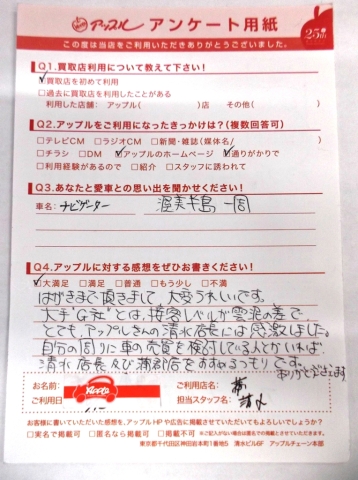 大手”G社”とは、接客レベルが雲泥の差でとてもアップルさんの清水店長には感激しました。
