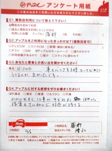 購入したばかりのおクルマをお譲りいただきありがとうございます。