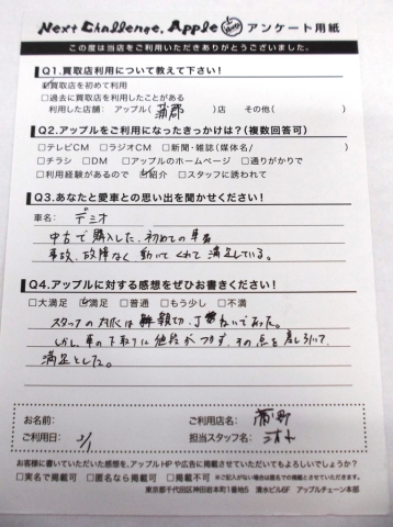 しかし、車の下取りに値段がつかず、その点を差し引いて満足とした。