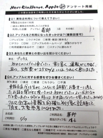 プリウス 初めてのハイブリッド車でした。