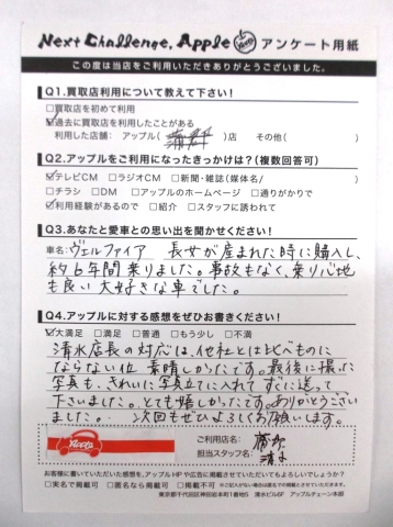 清水店長の対応は、他社とは比べものにならない位素晴らしかったです。