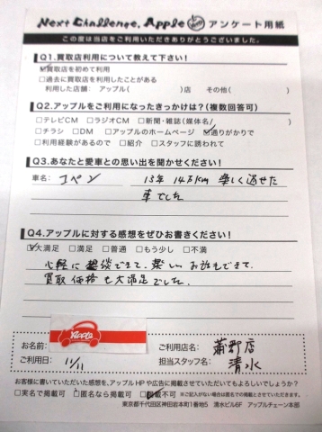 お車のご相談・ 査定だけでもOK! カンタン 入力 30秒 アップルがブランド買取始めました! お電話でも受付中! 受付時間10:00 ~ 19:00(新規ご査定の受付は18:30までとなります。) 0533-66-6666 お車のご相談・ 査定だけでもOK! カンタン 入力 30秒 アップルがブランド買取始めました! お電話でも受付中! 受付時間10:00 ~ 19:00(新規ご査定の受付は18:30までとなります。) 0533-66-6666 アップルがブランド買取始めました! お電話でも受付中! 受付時間10:00 ~ 19:00(新規ご査定の受付は18:30までとなります。) 0533-66-6666 店舗情報 在庫車 スタッフ紹介 ブログ お客様の声 キャンペーン お得 無料査定 click お客様の声 ご記入日: 2015/11/11 A.S様 おクルマとの思い出・・・コペン 13年 14万km 楽しく過ごせた車でした。アップルへの感想・・・○軽に相談できて楽しいお話もできて買取価格も大満足でした。担当者より・・・こちらこそ楽しいお話をありがとうございました。ロードスターもまたお願いします。 前へ 次へ お客様の声一覧を見る