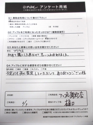 アップル蒲郡店をご利用下さり、ありがとうございます。