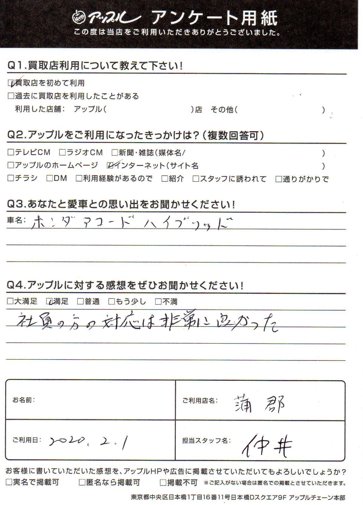 お車のご相談・ 査定だけでもOK! カンタン 入力 30秒 アップルがブランド買取始めました! お電話でも受付中! 受付時間10:00 ~ 19:00(新規ご査定の受付は18:30までとなります。) 0533-66-6666 お車のご相談・ 査定だけでもOK! カンタン 入力 30秒 アップルがブランド買取始めました! お電話でも受付中! 受付時間10:00 ~ 19:00(新規ご査定の受付は18:30までとなります。) 0533-66-6666 アップルがブランド買取始めました! お電話でも受付中! 受付時間10:00 ~ 19:00(新規ご査定の受付は18:30までとなります。) 0533-66-6666 店舗情報 在庫車 スタッフ紹介 ブログ お客様の声 キャンペーン お得 無料査定 click お客様の声 ご記入日: 2020/02/01 匿名希望様 車名:ホンダ アコードハイブリッド(~H28年5月) 社員の方の対応は非常に良かった。 前へ 次へ お客様の声一覧を見る