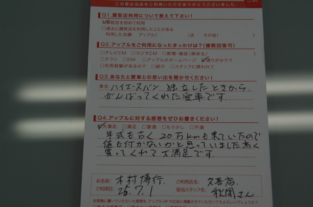お車のご相談・ 査定だけでもOK! カンタン 入力 30秒 アップルがブランド買取始めました! お電話でも受付中! 受付時間10:00 ~ 19:00 0480-25-0404 お車のご相談・ 査定だけでもOK! カンタン 入力 30秒 アップルがブランド買取始めました! お電話でも受付中! 受付時間10:00 ~ 19:00 0480-25-0404 アップルがブランド買取始めました! お電話でも受付中! 受付時間10:00 ~ 19:00 0480-25-0404 店舗情報 在庫車 スタッフ紹介 ブログ お客様の声 キャンペーン お得 無料査定 click お客様の声 ご記入日: 2014/08/31 木村様 年式も古く、20万kmも乗っていたので、値も付かないかと思っていました。高く買ってくれて大満足です。 前へ 次へ お客様の声一覧を見る