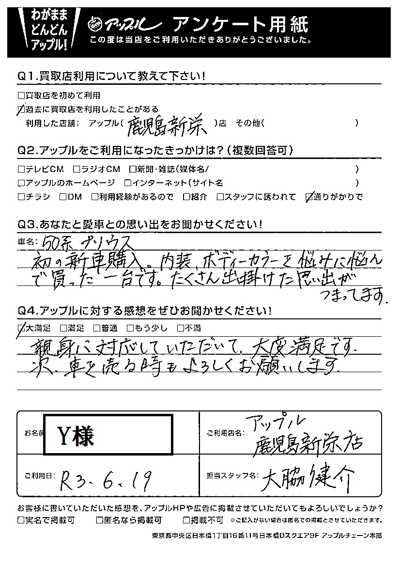 Y様 車名:トヨタ プリウス(2023年3月~のPHVを含む)