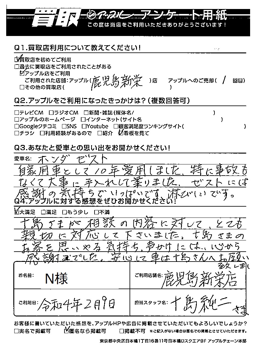 ゼストには感謝の気持ちでいっぱいです。寂しいです。