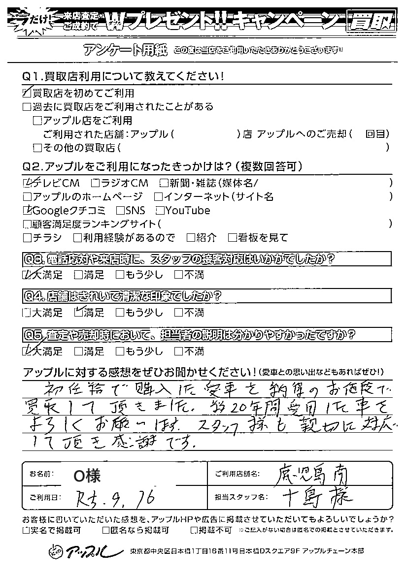 O 様 担当:十島
