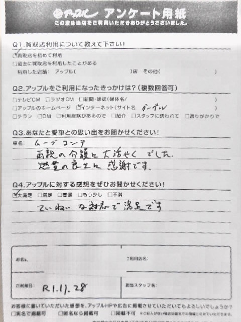 お車のご相談・ 査定だけでもOK! カンタン 入力 30秒 アップルがブランド買取始めました! お電話でも受付中! 受付時間10:00 ~ 19:00 099-213-1107 お車のご相談・ 査定だけでもOK! カンタン 入力 30秒 アップルがブランド買取始めました! お電話でも受付中! 受付時間10:00 ~ 19:00 099-213-1107 アップルがブランド買取始めました! お電話でも受付中! 受付時間10:00 ~ 19:00 099-213-1107 店舗情報 在庫車 スタッフ紹介 ブログ お客様の声 キャンペーン お得 無料査定 click お客様の声 ご記入日: 2019/11/28 鹿児島県指宿市 I様 車名:ダイハツ ムーヴコンテ ていねいな… 前へ 次へ お客様の声一覧を見る