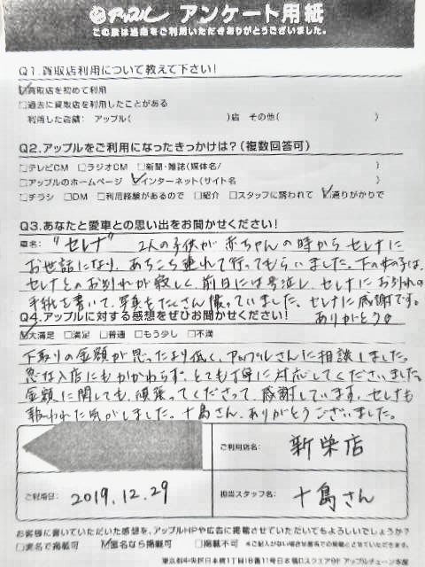 お車のご相談・ 査定だけでもOK! カンタン 入力 30秒 アップルがブランド買取始めました! お電話でも受付中! 受付時間10:00 ~ 19:00 099-213-1107 お車のご相談・ 査定だけでもOK! カンタン 入力 30秒 アップルがブランド買取始めました! お電話でも受付中! 受付時間10:00 ~ 19:00 099-213-1107 アップルがブランド買取始めました! お電話でも受付中! 受付時間10:00 ~ 19:00 099-213-1107 店舗情報 在庫車 スタッフ紹介 ブログ お客様の声 キャンペーン お得 無料査定 click お客様の声 ご記入日: 2019/12/29 鹿児島県鹿児島市 S様 車名:日産 セレナ 2人の子供が… 前へ 次へ お客様の声一覧を見る