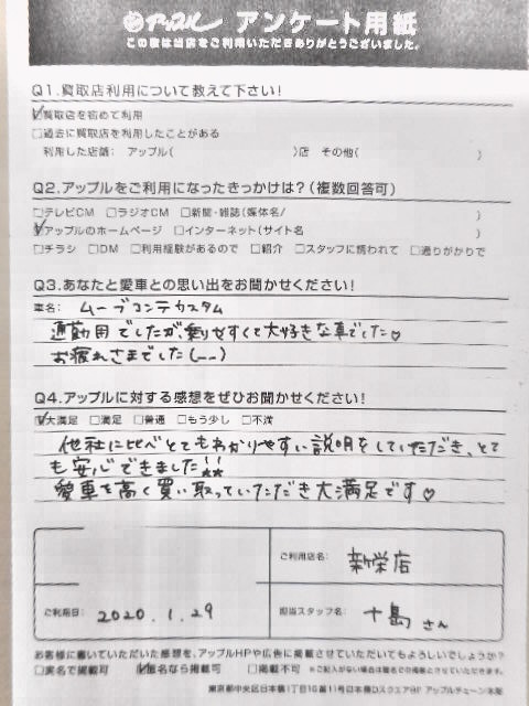 お車のご相談・ 査定だけでもOK! カンタン 入力 30秒 アップルがブランド買取始めました! お電話でも受付中! 受付時間10:00 ~ 19:00 099-213-1107 お車のご相談・ 査定だけでもOK! カンタン 入力 30秒 アップルがブランド買取始めました! お電話でも受付中! 受付時間10:00 ~ 19:00 099-213-1107 アップルがブランド買取始めました! お電話でも受付中! 受付時間10:00 ~ 19:00 099-213-1107 店舗情報 在庫車 スタッフ紹介 ブログ お客様の声 キャンペーン お得 無料査定 click お客様の声 ご記入日: 2020/01/29 鹿児島県鹿児島市 U様 車名:ダイハツ ムーヴコンテ 他社に比べ… 前へ 次へ お客様の声一覧を見る