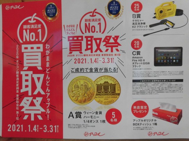 お車のご相談・ 査定だけでもOK! カンタン 入力 30秒 アップルがブランド買取始めました! お電話でも受付中! 受付時間10:00 ~ 18:00 0242-29-6400 お車のご相談・ 査定だけでもOK! カンタン 入力 30秒 アップルがブランド買取始めました! お電話でも受付中! 受付時間10:00 ~ 18:00 0242-29-6400 アップルがブランド買取始めました! お電話でも受付中! 受付時間10:00 ~ 18:00 0242-29-6400 店舗情報 在庫車 スタッフ紹介 ブログ お客様の声 キャンペーン お得 無料査定 click 最新記事一覧 月別アーカイブ 2026年04月(1)2026年03月(1)2026年02月(1)2026年01月(1)2025年12月(1)2025年11月(1)2025年10月(1)2025年08月(2)2025年07月(1)2025年06月(1)2025年05月(1)2025年04月(1)2025年03月(1)2025年02月(1)2025年01月(1)2024年12月(1)2024年11月(1)2024年10月(1)2024年09月(1)2024年08月(1)2024年07月(2)2024年06月(1)2024年04月(2)2024年03月(1)2024年02月(1)2024年01月(1)2023年12月(1)2023年11月(1)2023年10月(1)2023年09月(1)2023年08月(1)2023年07月(1)2023年06月(1)2023年05月(2)2023年04月(1)2023年03月(1)2023年02月(1)2023年01月(1)2022年12月(1)2022年11月(1)2022年10月(1)2022年09月(1)2022年08月(1)2022年07月(2)2022年06月(1)2022年04月(2)2022年03月(1)2022年02月(1)2022年01月(1)2021年12月(1)2021年11月(1)2021年10月(1)2021年09月(1)2021年08月(1)2021年07月(1)2021年06月(1)2021年05月(1)2021年04月(2)2021年03月(1)2021年02月(1)2021年01月(1)2020年12月(1)2020年11月(1)2020年10月(1)2020年09月(2)2020年08月(1)2020年07月(1)2020年06月(1)2020年05月(1)2020年04月(2)2020年03月(1)2020年02月(1)2020年01月(1)2019年12月(1)2019年11月(1)2019年10月(1)2019年09月(1)2019年08月(2)2019年07月(1)2019年06月(1)2019年05月(1)2019年04月(1)2019年03月(1)2019年02月(1)2018年12月(1)2018年11月(1)2018年10月(1)2018年09月(2)2016年09月(1) 61-70/100件中 [ 未分類 ] 2021/07/05(月) 15:16 お気軽にご相談下さい。 車両の買取で亡くられた方の名義変更(遺産相続名義変更)、車検証の所有権がローン会社もしくはディーラーについておりますと準備する書類が多く日数もかかります。査定依頼の際は早めの来店をおすすめします。車両の乗り換え、買取など検討中の方査定は無料で行なっております。お気軽にご相談下さい。只今新型… [ 未分類 ] 2021/06/10(木) 10:13 6月 高齢者からのワクチン接種がいよいよ始まり気持ちが落ち着いた方、副作用等で心配している方などさまざまかと思います。早く新型コロナウィルスが消息して以前の生活環境に戻ってほしいと願うばかりです。アップル会津若松店では、店内除菌(触れる場所は全て)換気、スタッフもマスク着用消毒で、できる限り配慮し… [ 未分類 ] 2021/05/08(土) 14:48 新型コロナウィルス感染予防強化! 今年のゴールデンウィークも我慢の休日だったように思えます。連休中も他県ナンバーを多くみかけあちこちに観光客が押し寄せて新型コロナウィルス対策の面で大丈夫なのかと、驚きと恐怖があります。もう身近に迫ってきてます。感染対策をしっかり行い予防に努めなければと感じております。*車両の買取査定ですが新… [ 未分類 ] 2021/04/24(土) 13:59 ゴールデンウィーク休業日のお知らせ *休業日のお知らせ*令和3年4月27日(火)~5月5日(水)まで上記の期間、休業とさせていただきます。ご不便ご迷惑をお掛けしますが何卒ご了承の程お願い申し上げます令和3年5月6日(木)より平常通りの営業となります。 [ 未分類 ] 2021/04/04(日) 15:28 春暖の候 4月になり、日中の気温がずい分とあがり、暖かくなりました。最近は黄砂、花粉、新型コロナウィルスと予防に急がしい毎日です。ここ何日かは黄砂がひどく車が黄砂で汚れているのがわかります。洗車も大変な時期です。*車両入庫しました!車両乗りかえ等ご検討中の方ぜひ現車を見に足を運んでみるのはいかがでしょ… [ 未分類 ] 2021/03/06(土) 15:52 わがままどんどんアップル! やっと、除雪作業の日々から抜け出して春らしい気候が近づいてきました。日中は暖房なしでもいられるくらいですが、朝晩寒いせいか体調を崩す方が増えてるようです。車両の乗り換えや査定買取での来店のお客様が増えています。自動車税の関係もあり今月中に名義変更等の処理をしませんと、4月には自動車税が発生し… [ 未分類 ] 2021/02/03(水) 15:36 除雪作業 今年は、去年に比べて雪の量も多く頻繁に除雪しています。体を動かすため重労働です。去年購入したローダーが大活躍で何回も出動しています。以前は皆で手押しでの除雪が主でしたが、ローダーが来てから除雪の時間も半分くらいになりました。車買取のアップルでは、引き続きわがままどんどんアップル!買取祭を行っ… [ 未分類 ] 2021/01/06(水) 15:23 あけましておめでとうございます! あけましておめでとうございます。今年もアップル会津若松店をよろしくお願いします。新型コロナウィルス感染拡大防止のため自粛が続きますが、今まで以上に手洗い、うがい、消毒など感染対策に努めていきたいと思います。店舗の中もこまめに換気し、テーブル椅子の消毒ドアノブの消毒テーブルでの飛沫感染予防のア… [ 未分類 ] 2020/12/04(金) 14:34 師走 早いもので、今月で一年が終わりますね。今年は世界