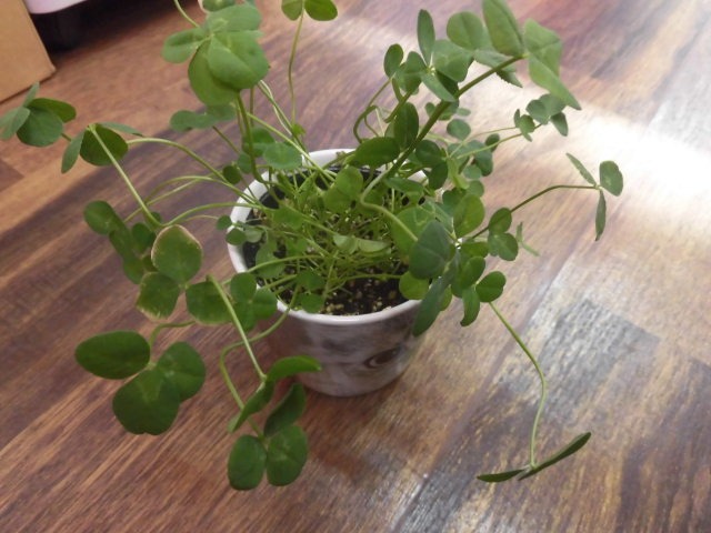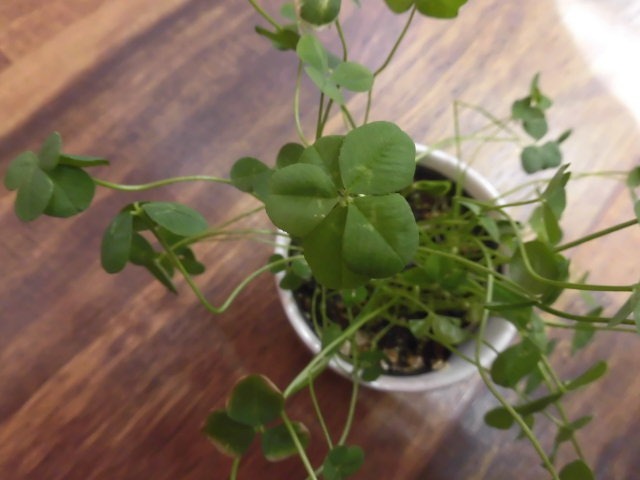・会社にある四葉のクローバー先月から比べると、大きくなりました。四葉でなく、五葉が出てきました!