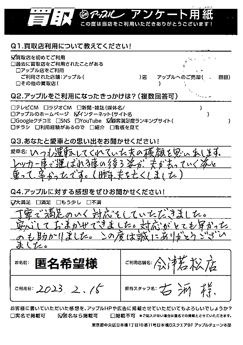 A:いつも運転してくれていた夫の横顔を思い出します。