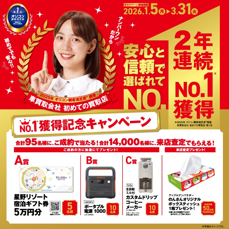 ご来店査定でもらえる! ご成約で総1,355名様に当たる!!