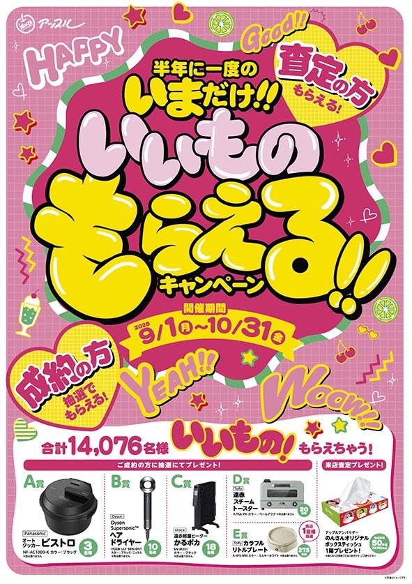 ご来店査定でもらえる! ご成約で総1,355名様に当たる!!