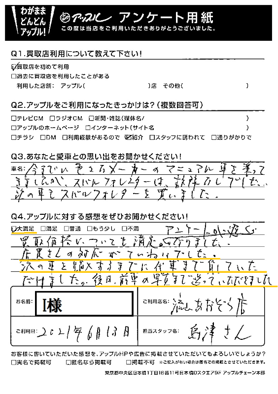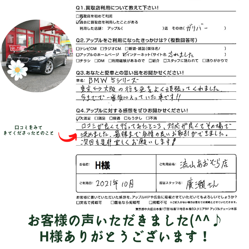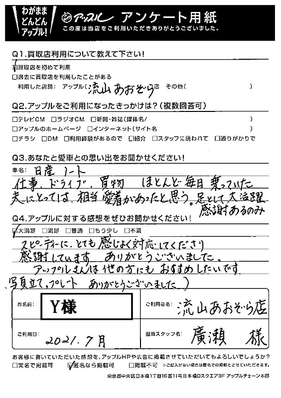流山あおぞら店をご利用されたお客様からいただいた