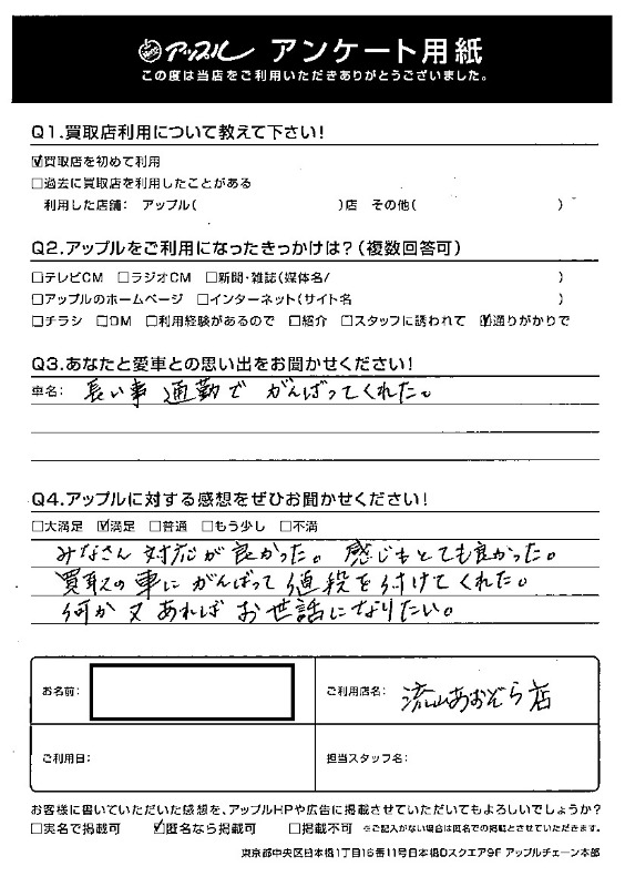 ●大切な愛車なのでしっかりとお車を評価してもらいたい方