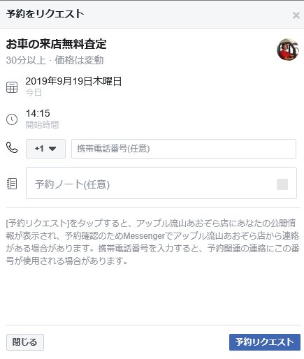 Facebookページからご来店の無料査定予約ができるようになりました!