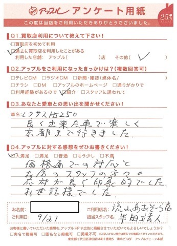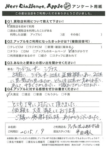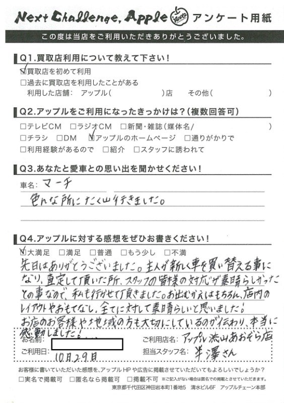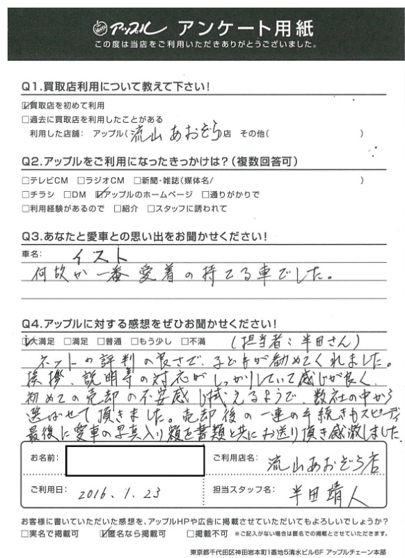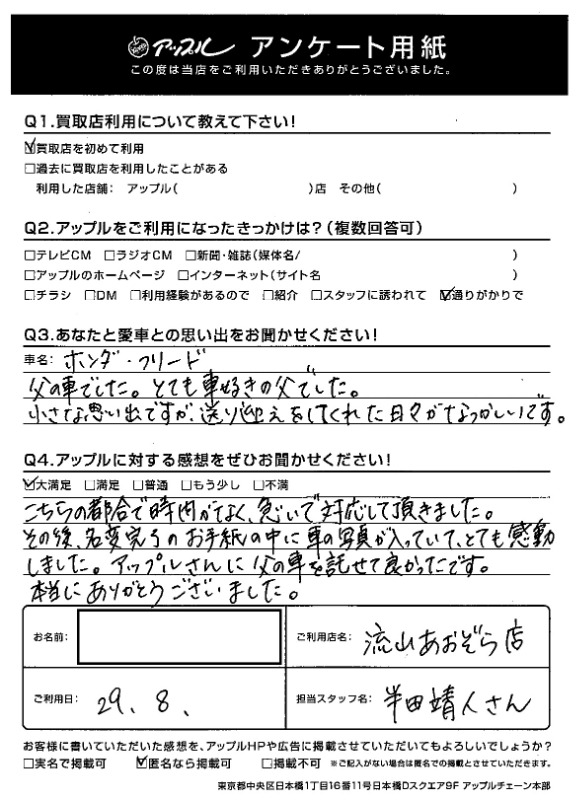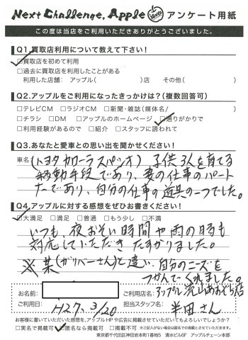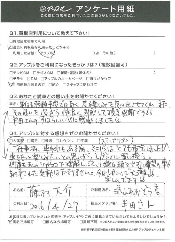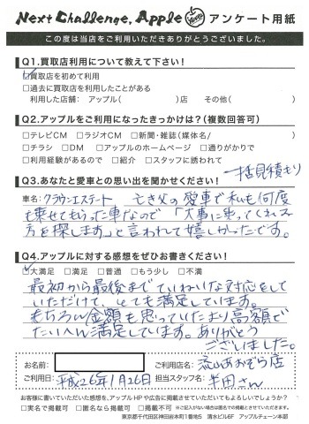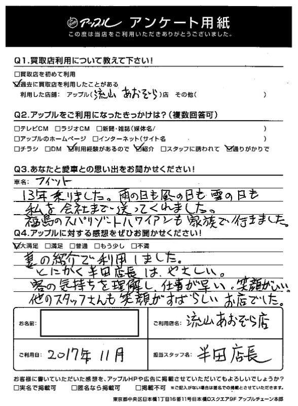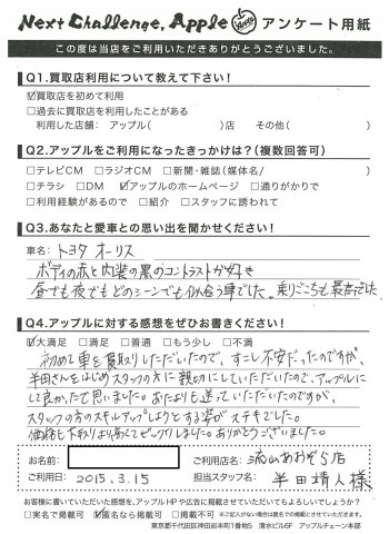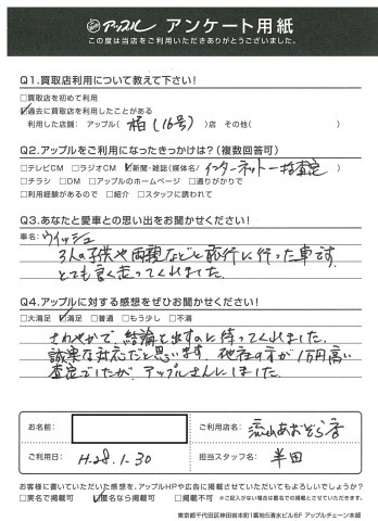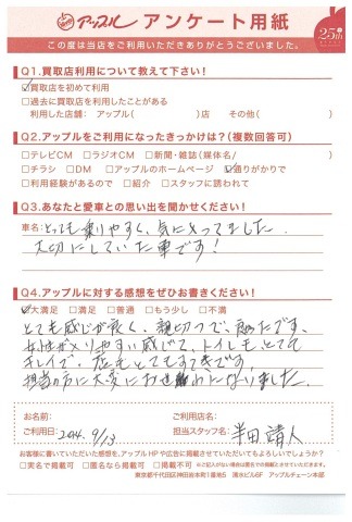 お車のご相談・ 査定だけでもOK! カンタン 入力 30秒 アップルがブランド買取始めました! お電話でも受付中! 受付時間10:00 ~ 18:30 0120-703-903 お車のご相談・ 査定だけでもOK! カンタン 入力 30秒 アップルがブランド買取始めました! お電話でも受付中! 受付時間10:00 ~ 18:30 0120-703-903 アップルがブランド買取始めました! お電話でも受付中! 受付時間10:00 ~ 18:30 0120-703-903 店舗情報 在庫車 スタッフ紹介 ブログ お客様の声 キャンペーン お得 無料査定 click [ 未分類 ] 2019/06/01 (土) 16:42 お客様の声 こんにちは!最愛の息子とニッコリのアップル半田です。本日は、改めて私、半田のご紹介をさせていただきます。1976年7月31日生まれのB型・しし座。宮城県仙台市生まれの茨城県つくば市育ち。茨城県私立常総学院卒業 群馬県市立高崎経済大学卒業1999年4月から車買取を主とする企業に就職2004年の夏にアップルへ移籍。中古車買取業界にどっぷり浸かって21年。これまでに5,500件以上の査定買取に携わる。では、どれだけの支持をお客様からいただけていたのか?もご紹介したいと思います! 2019-06-01 16:42:15 新しい記事へ 古い記事へ 最新記事 初めての売却でも安心♪☆スカイラインご成約ありがとうございました☆春の気配3月限定!令和8年度自動車税アップル全額負担!!ハイブリッドカー強化買取中 店舗情報に戻る 月別アーカイブ 2026年04月(2)2026年03月(4)2026年02月(12)2026年01月(16)2025年12月(13)2025年11月(13)2025年10月(29)2025年09月(15)2025年08月(23)2025年07月(22)2025年06月(11)2025年05月(4)2025年04月(5)2025年03月(4)2025年02月(6)2025年01月(5)2024年12月(6)2024年11月(5)2024年10月(7)2024年09月(1)2024年08月(4)2024年07月(1)2024年06月(1)2024年04月(2)2023年12月(1)2023年11月(1)2023年08月(1)2023年07月(2)2023年06月(2)2023年05月(1)2023年04月(1)2023年03月(1)2023年02月(2)2023年01月(1)2022年12月(1)2022年10月(1)2022年09月(3)2022年08月(2)2022年07月(1)2022年04月(2)2022年03月(3)2022年01月(3)2021年12月(11)2021年11月(2)2021年10月(1)2021年09月(3)2021年08月(5)2021年07月(6)2021年06月(8)2021年05月(5)2021年04月(2)2021年03月(2)2021年02月(2)2021年01月(4)2020年12月(3)2020年11月(4)2020年10月(4)2020年09月(7)2020年08月(6)2020年07月(12)2020年06月(9)2020年05月(7)2020年04月(8)2020年03月(10)2020年02月(8)2020年01月(9)2019年12月(10)2019年11月(8)2019年10月(22)2019年09月(8)2019年06月(3)2019年05月(8)2019年04月(2)2019年03月(1)2019年02月(3)2019年01月(2)2018年12月(5)2018年11月(6)2018年10月(1)2018年09月(6)2018年08月(7)2018年07月(8)2018年06月(3)2018年05月(3)2018年04月(4)2018年03月(6)2018年02月(5)2018年01月(8)2017年12月(7)2017年11月(7)2017年10月(8)2017年09月(8)2017年08月(7)2017年07月(11)2017年06月(9)2017年05月(5)2017年04月(12)2017年03月(9)2017年02月(11)2017年01月(12)2016年12月(16)2016年11月(23)2016年10月(31)2016年09月(30)2016年08月(15)2016年07月(5)2016年06月(17)2016年05月(6)2016年04月(4)2016年03月(3)2016年02月(6)2016年01月(8)2015年12月(6)2015年11月(5)2015年10月(6)2015年09月(6)2015年08月(8)2015年07月(11)2015年06月(8)2015年05月(6)2015年04月(7)2015年03月(7)2015年02月(9)2015年01月(11)2014年12月(14)2014年11月(18)2014年10月(17)2014年09月(17)2014年08月(12)2014年07月(15)2014年06月(6)