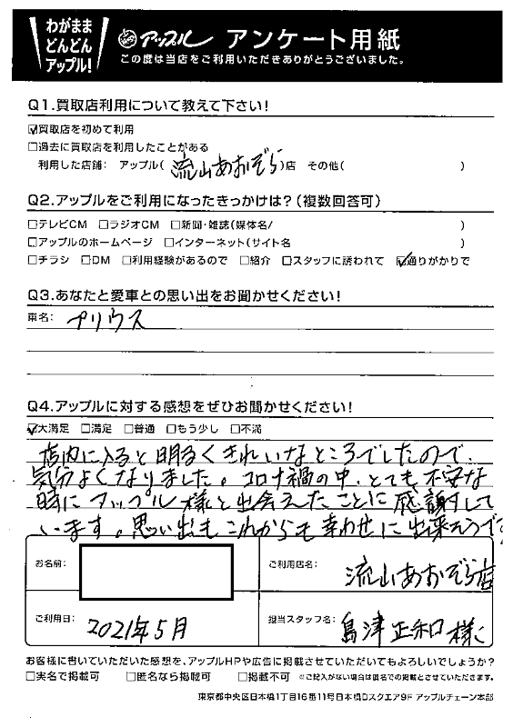 お車のご相談・ 査定だけでもOK! カンタン 入力 30秒 アップルがブランド買取始めました! お電話でも受付中! 受付時間10:00 ~ 18:30 0120-703-903 お車のご相談・ 査定だけでもOK! カンタン 入力 30秒 アップルがブランド買取始めました! お電話でも受付中! 受付時間10:00 ~ 18:30 0120-703-903 アップルがブランド買取始めました! お電話でも受付中! 受付時間10:00 ~ 18:30 0120-703-903 店舗情報 在庫車 スタッフ紹介 ブログ お客様の声 キャンペーン お得 無料査定 click [ つぶやき ] 2021/06/10 (木) 12:14 お客様の声・いただいた8名分更新しました★★★ こんにちは。アップル流山あおぞら店です。6月だというのにもう暑い!体調崩していませんか?嬉しいお客様の声、たくさんいただきました!↓他の買取店と対応が違いすぎてビックリと💦大満足の評価いただきましてありがとうございます!↓コロナ禍の中不安を少しでも取り除けたようでうれしいです!他にもたくさんのお客様の声いただいております!!↓「お客様の声」はこちらから【流山あおぞら店 お客様の声】是非ご覧ください★*****************************************************************************アップル流山あおぞら店、沢山のクチコミをいただいております!↓こちらから口コミご覧ください【流山あおぞら店Google口コミ】アップル流山あおぞら店では、お客様毎のテーブル・椅子の消毒、仕切り板の設置など感染症対策を行い、元気に営業中です★ 2021-06-10 12:14:30 新しい記事へ 古い記事へ 最新記事 初めての売却でも安心♪☆スカイラインご成約ありがとうございました☆春の気配3月限定!令和8年度自動車税アップル全額負担!!ハイブリッドカー強化買取中 店舗情報に戻る 月別アーカイブ 2026年04月(2)2026年03月(4)2026年02月(12)2026年01月(16)2025年12月(13)2025年11月(13)2025年10月(29)2025年09月(15)2025年08月(23)2025年07月(22)2025年06月(11)2025年05月(4)2025年04月(5)2025年03月(4)2025年02月(6)2025年01月(5)2024年12月(6)2024年11月(5)2024年10月(7)2024年09月(1)2024年08月(4)2024年07月(1)2024年06月(1)2024年04月(2)2023年12月(1)2023年11月(1)2023年08月(1)2023年07月(2)2023年06月(2)2023年05月(1)2023年04月(1)2023年03月(1)2023年02月(2)2023年01月(1)2022年12月(1)2022年10月(1)2022年09月(3)2022年08月(2)2022年07月(1)2022年04月(2)2022年03月(3)2022年01月(3)2021年12月(11)2021年11月(2)2021年10月(1)2021年09月(3)2021年08月(5)2021年07月(6)2021年06月(8)2021年05月(5)2021年04月(2)2021年03月(2)2021年02月(2)2021年01月(4)2020年12月(3)2020年11月(4)2020年10月(4)2020年09月(7)2020年08月(6)2020年07月(12)2020年06月(9)2020年05月(7)2020年04月(8)2020年03月(10)2020年02月(8)2020年01月(9)2019年12月(10)2019年11月(8)2019年10月(22)2019年09月(8)2019年06月(3)2019年05月(8)2019年04月(2)2019年03月(1)2019年02月(3)2019年01月(2)2018年12月(5)2018年11月(6)2018年10月(1)2018年09月(6)2018年08月(7)2018年07月(8)2018年06月(3)2018年05月(3)2018年04月(4)2018年03月(6)2018年02月(5)2018年01月(8)2017年12月(7)2017年11月(7)2017年10月(8)2017年09月(8)2017年08月(7)2017年07月(11)2017年06月(9)2017年05月(5)2017年04月(12)2017年03月(9)2017年02月(11)2017年01月(12)2016年12月(16)2016年11月(23)2016年10月(31)2016年09月(30)2016年08月(15)2016年07月(5)2016年06月(17)2016年05月(6)2016年04月(4)2016年03月(3)2016年02月(6)2016年01月(8)2015年12月(6)2015年11月(5)2015年10月(6)2015年09月(6)2015年08月(8)2015年07月(11)2015年06月(8)2015年05月(6)2015年04月(7)2015年03月(7)2015年02月(9)2015年01月(11)2014年12月(14)2014年11月(18)2014年10月(17)2014年09月(17)2014年08月(12)2014年07月(15)2014年06月(6)
