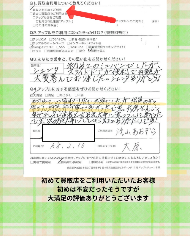 初めて買取店をご利用いただいたお客様。