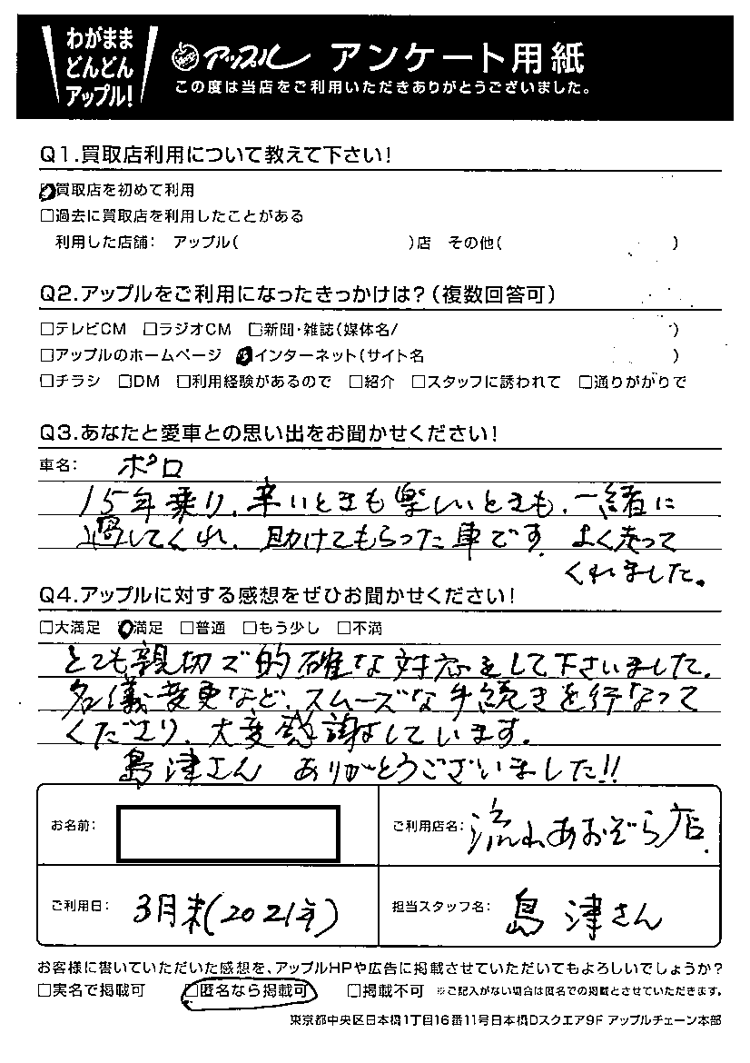 H様 車名:フォルクスワーゲン ポロ