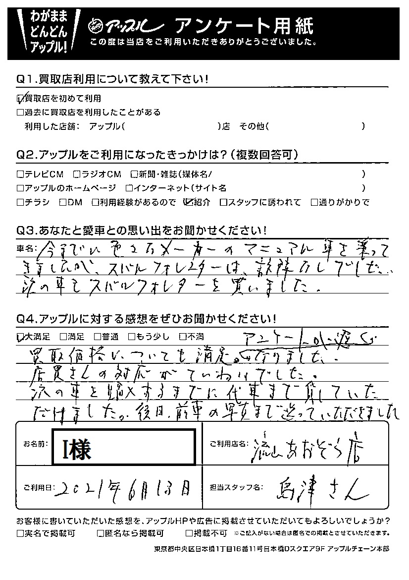 今までに色々なメーカーのマニュアル車に乗ってきましたが、フォレスターは故障無しでした。