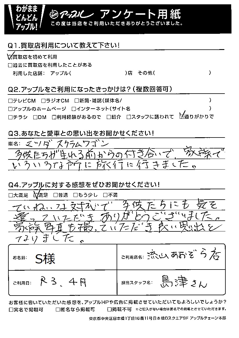 S様 車名:マツダ スクラムワゴン