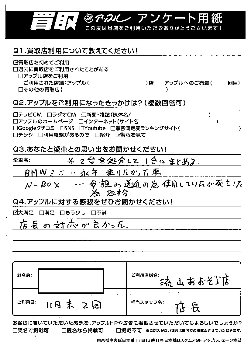 N-BOX...母親の送迎の為、使用していたが死亡したため処分