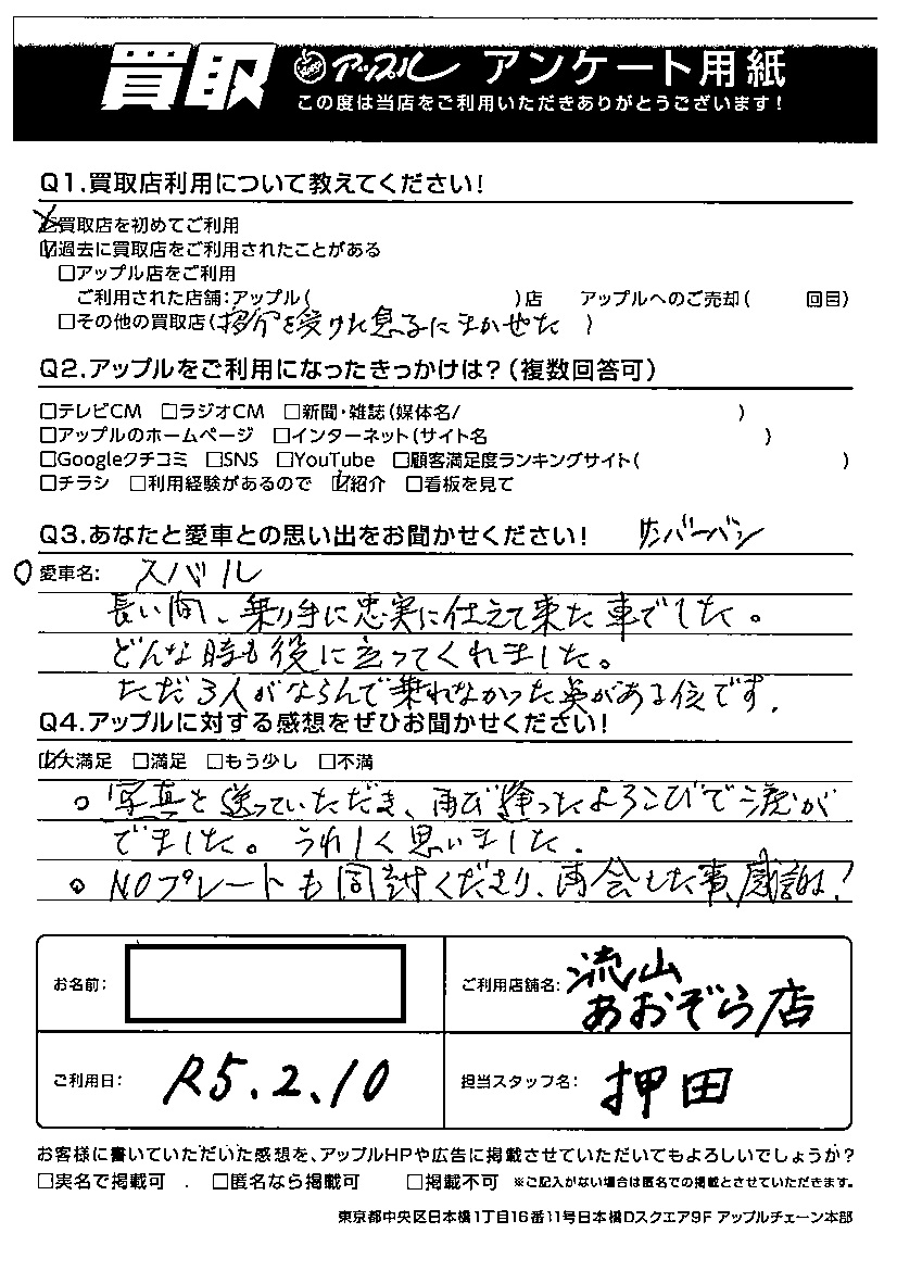 S様 車名:スバル サンバー