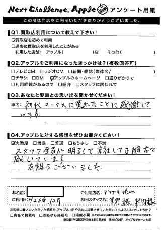 I様、このたびは当店にマークXをお任せいただきまして、誠にありがとうございました!明るくお客様をお出迎えすることに「こだわり」をもって営業している甲斐があります!ありがとうございました!