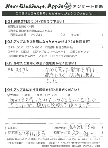 F様、この度は、スイフトを当店にご売却いただきまして誠にありがとうございました!!!