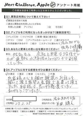 お客様の心を掴み親密にお話しを聞いて頂き希望の金額で売買して頂きました。半田様は良い好感度でした。ありがとうございました。