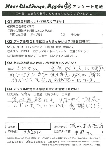 このたびは、アンケートにご協力いただきありがとうございます!そして思い出たくさんのイプサムを私どもにお任せいただき感謝でございます!こちらこそ本当にお世話になり、ありがとうございました!