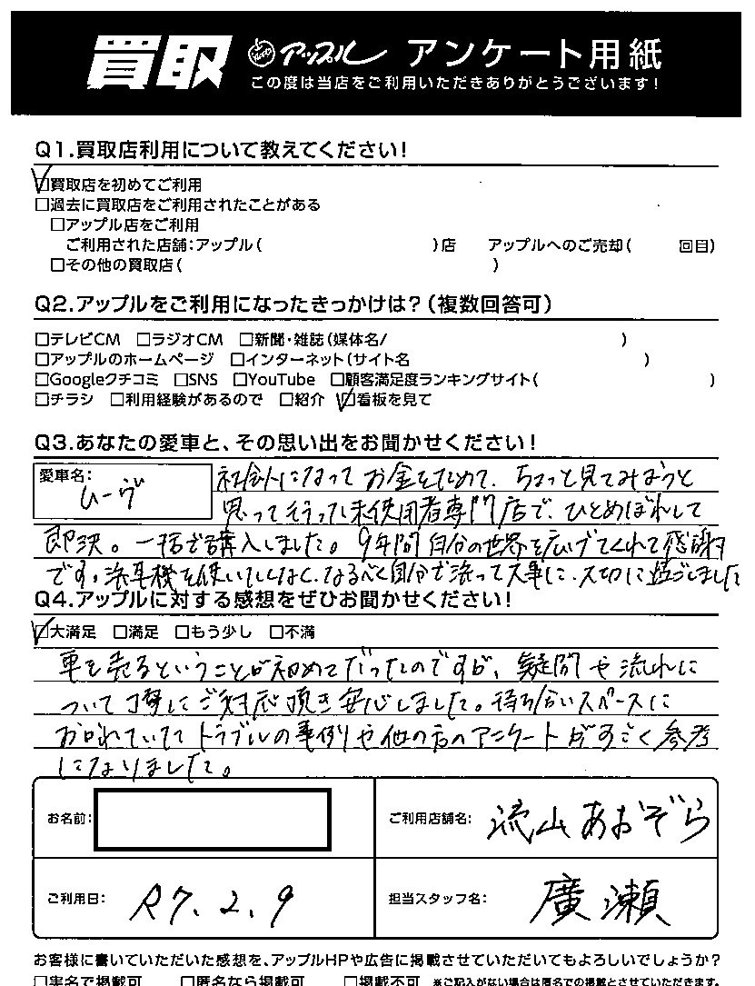 車を売るということが初めてだったのですが、疑問や流れについて丁寧にご対応頂き安心しました。