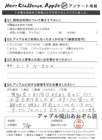 アンケートのご記入、ありがとうございました!NBOXはピッカピカにして、大切に乗っていただける次のオーナー様にしっかりと継承いたします!ありがとうございました!byスタッフ一同