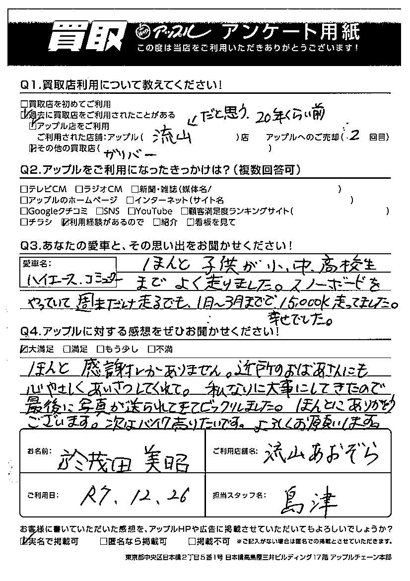 於茂田 美昭様 車名:トヨタ ハイエースコミューター