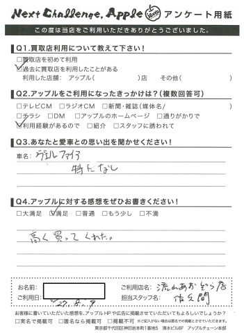 M様 このたびはアンケートにご協力いただきありがとうございます!今回も張り切って高く買い取りをさせていただきました!!これまでに何度もアップルをご利用いただけていますからね!本当にありがとうございました!!byスタッフ一同