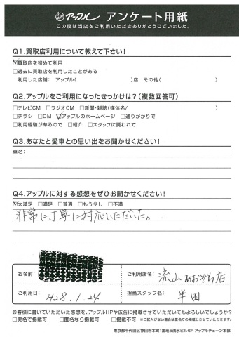 非常に丁寧に対応いただいた。