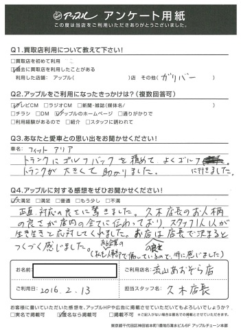 車名:フィットアリア