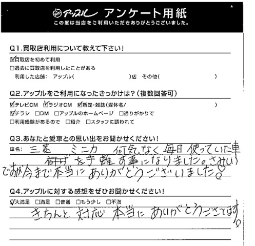 毎日何気なく使っていた車を手放すことになりました。さみしいで すが、本当にありがとうございました!