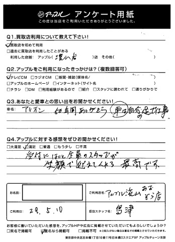 K様、このたびはアンケートにご協力いただきありがとうございます!そして、嬉しいお言葉もいただき感謝です!50年間・・・・本当に車に感謝ですね!byスタッフ一同