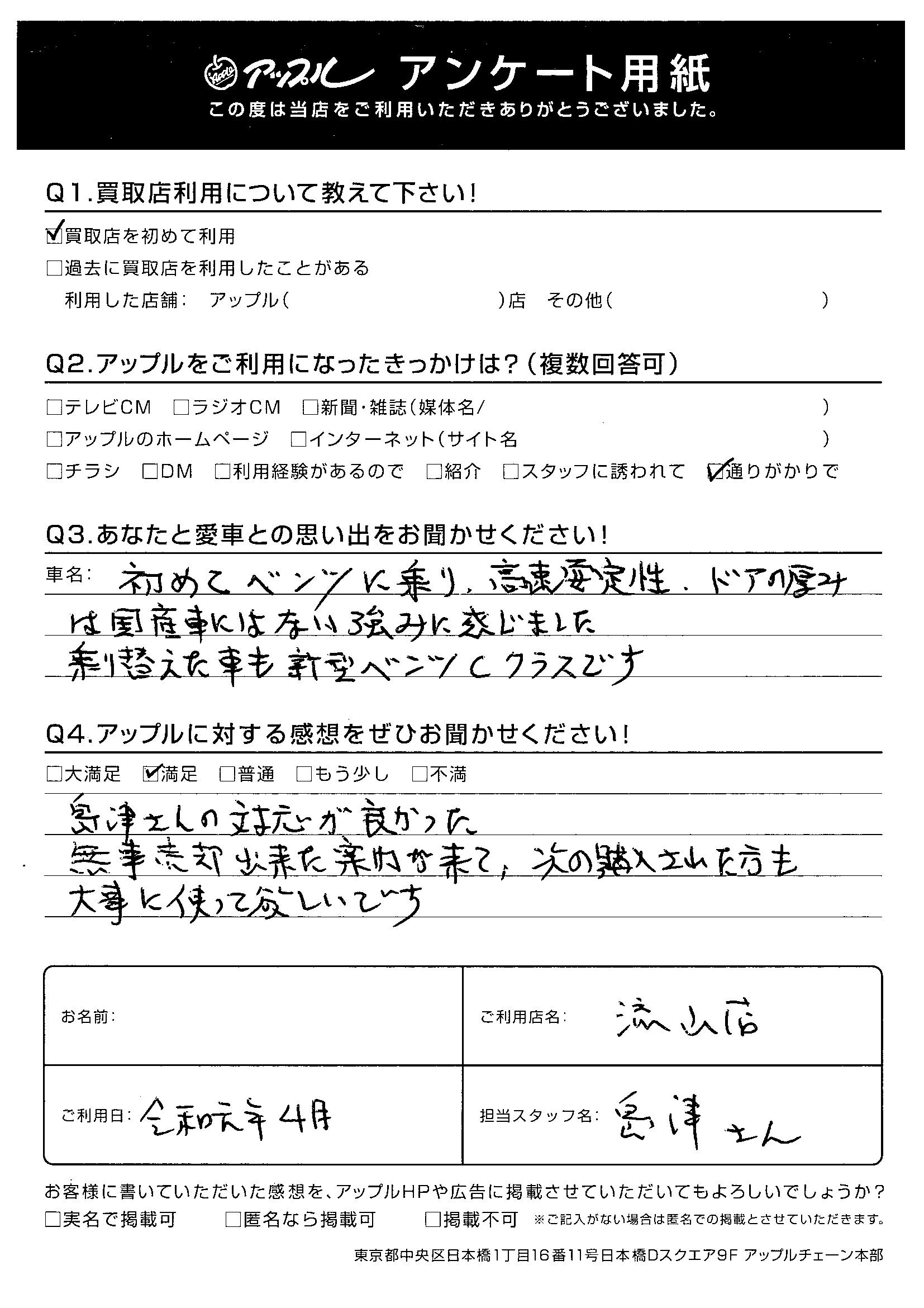 初めてベンツに乗り、高速安定性・ドアの厚みは国産車にはない強みに感じました。