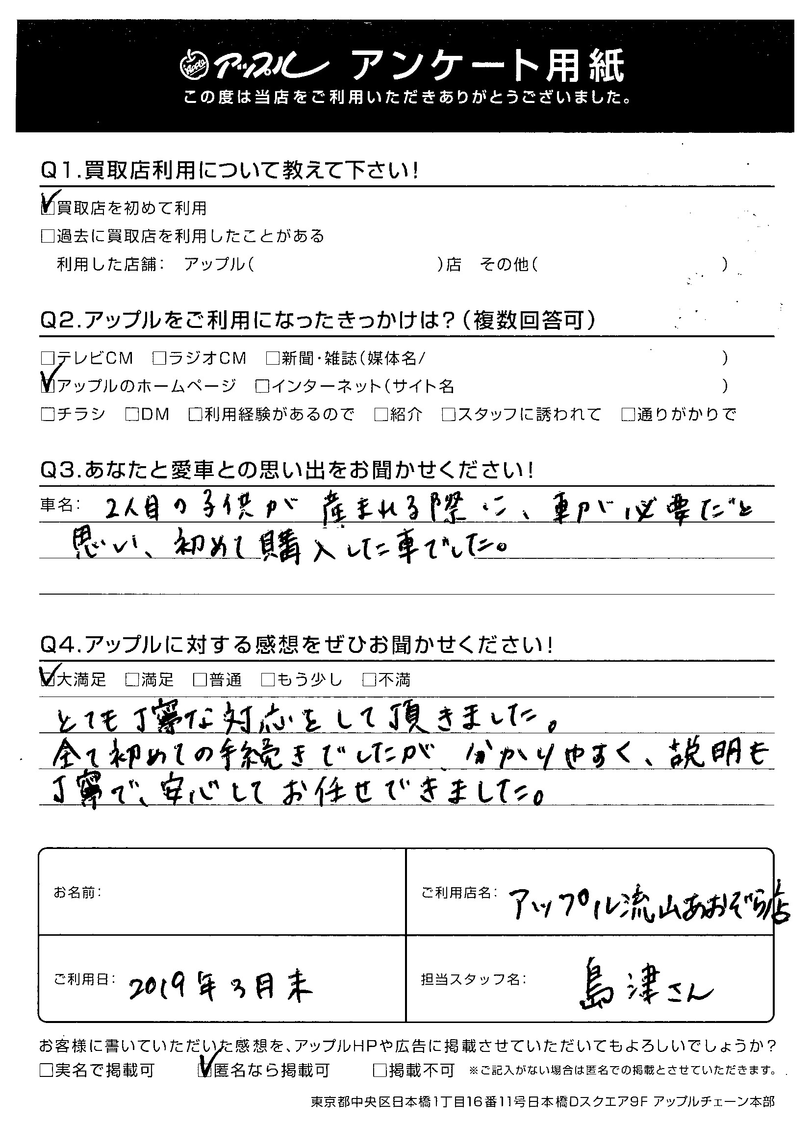 全て初めての手続きでしたが、分かりやすく、説明も丁寧で、安心してお任せできました。