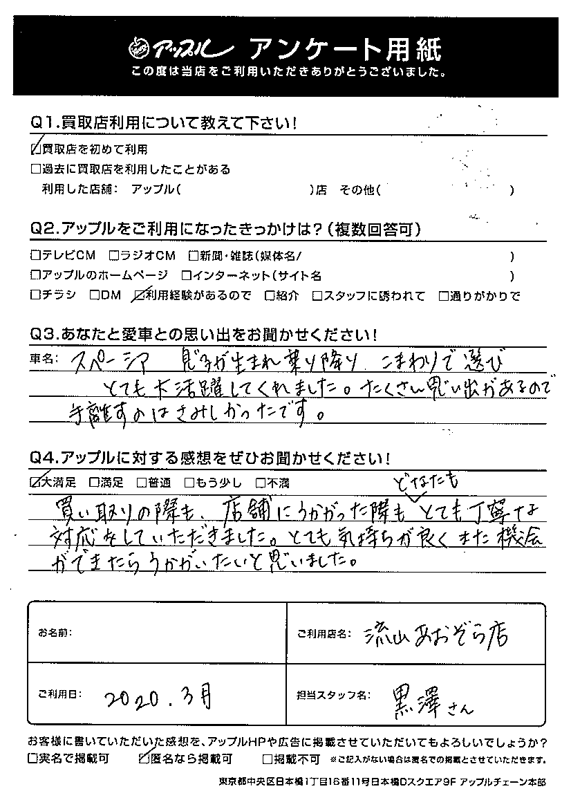 T様 車名:スズキ スペーシア