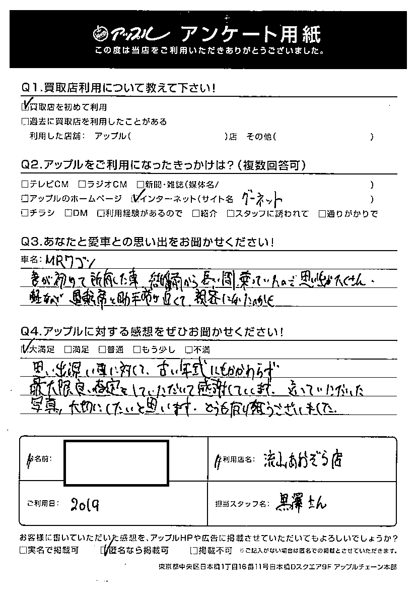 I様 車名:スズキ MRワゴン